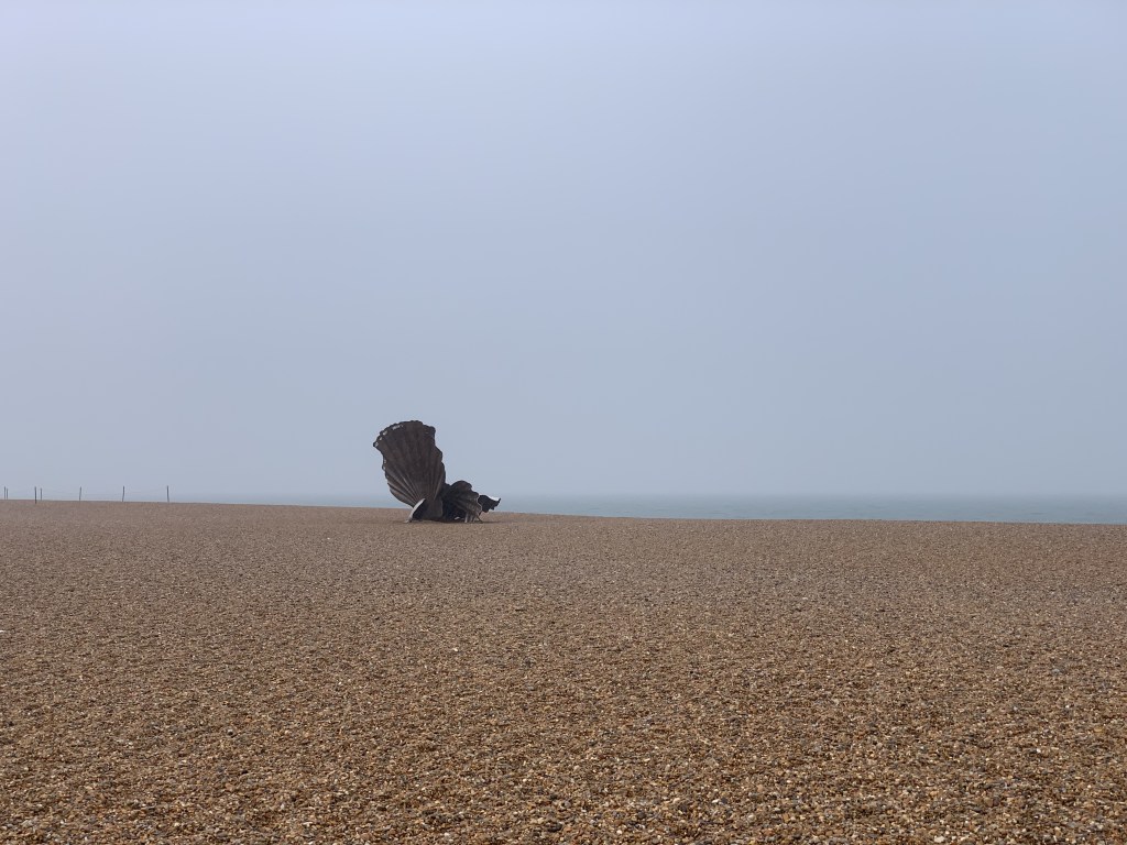 Eventually, the path moves through a caravan park and you’re almost at Aldeburgh. This route joins the coast taking you along Aldebrugh’s pebble beach via the shell sculpture. The sculpture is one of the most famous sights of Aldeburgh as, depending on your perspective, the structure looks like something different. On the one hand, it looks like a shell but, if you face it side on, it looks like a ship. It was created by Maggi Hambling as a tribute to Benjamin Britten, a composer who lived in Aldeburgh and often walked along this stretch of beach1.