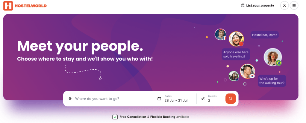 The best place to find hostels is a website called Hostel World. Here you will find many different options across the globe. However, you can also use booking.com as oftentimes hostels are on here too.