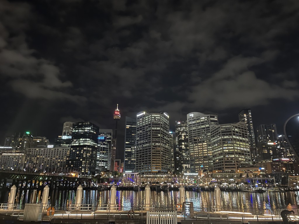 Darling Harbour is the place to go for nightlife on an evening. I’m not talking clubs but, restaurants and bars. We had a meal elsewhere and walked around the harbour afterwards. We were greeted to incredible views of the city skyline as well as a peaceful but lively atmosphere of buskers and street performers. It was one of those moments where you sit and think about where you are and how incredible the experience is. I highly recommend having a wander down here on an evening – and in the day time too.