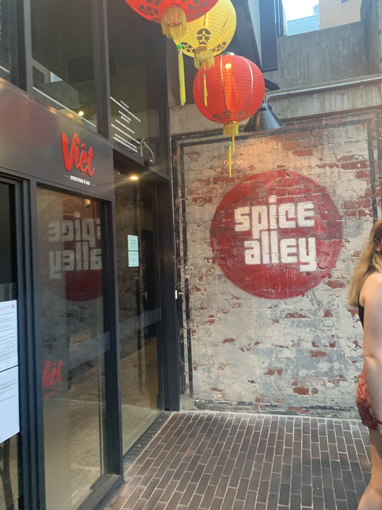 The top food recommendation that I have for you is Spice Alley. This is an outdoor street food kind of place that is located near Wake Up Sydney and Central YHA hostels in the Haymarket neighbourhood. It is home to many different cuisines including Japanese, Vietnamese, Thai, Singaporean and many more. If I am remembering correctly, we both opted to get Thai food. The atmosphere here was great. It is only a small area though so it did get fairly busy.