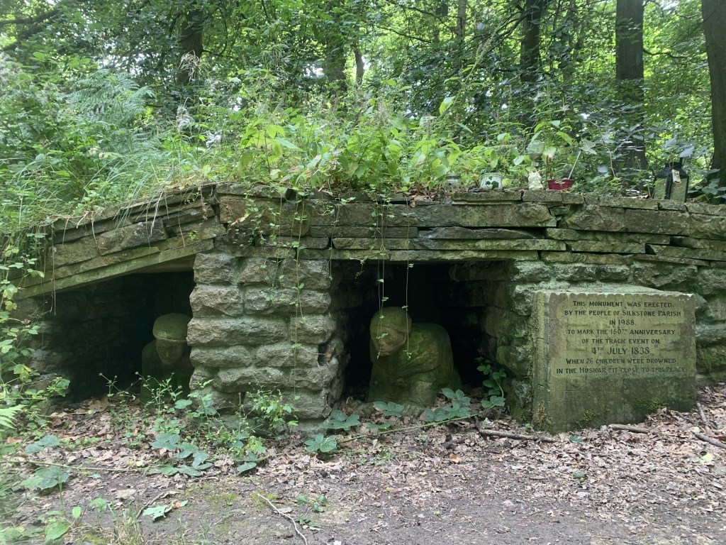 As you arrive in Silkstone Common, there are two mining memorials to see. The first is a bench which is a sculpture of two men with mining equipment. There is also an information board at the site to give you more details about the history of Silkstone Common specifically. The second memorial has a tragic backstory. To see this one, you must leave the Trans Pennine Trail slightly and head across the road and into the woodland area (Knabbs Wood). The Huskar Memorial is a tribute to the 26 children that drowned when Huskar Pit flooded in 1838. This incident lead to more legislation being put in place and boys under the age of 10 and all girls were banned from working underground.