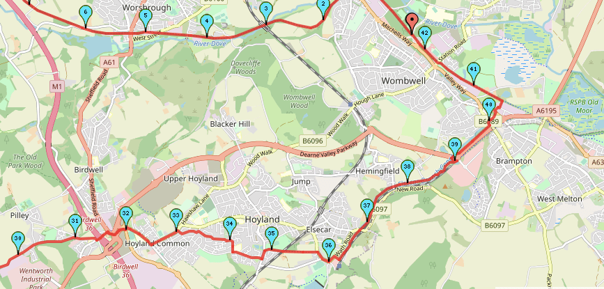 - Join the Trans Pennine Trail near Netherwood Academy towards Barnsley.