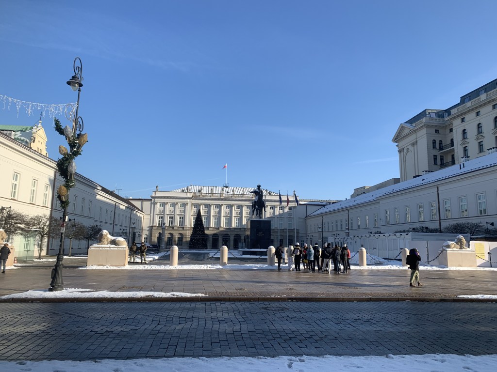 From the Palace of Culture and Science, we headed to our hostel via the Ogrod Saski gardens which was truly a beautiful park in the snow. It was really lovely to stroll through a wooded, green space in the centre of the city. Here, many people were walking their dogs and it very much felt like stepping into Narnia because of the weather on this occasion. At the end of the park is the Tomb of the Unknown Soldier which is a war memorial where two guards stand vigil 24/7. It is a memorial to those that lost their lives in WW1 whose identities still remain unknown. The inscription on the tomb stone reads: “Here lies the soldier of Poland who died for his homeland.” It is a beautiful memorial and one you should definitely see during your time in the city. The area itself used to be a Saxon Palace and it seems there are plans to rebuild a replica of the site.