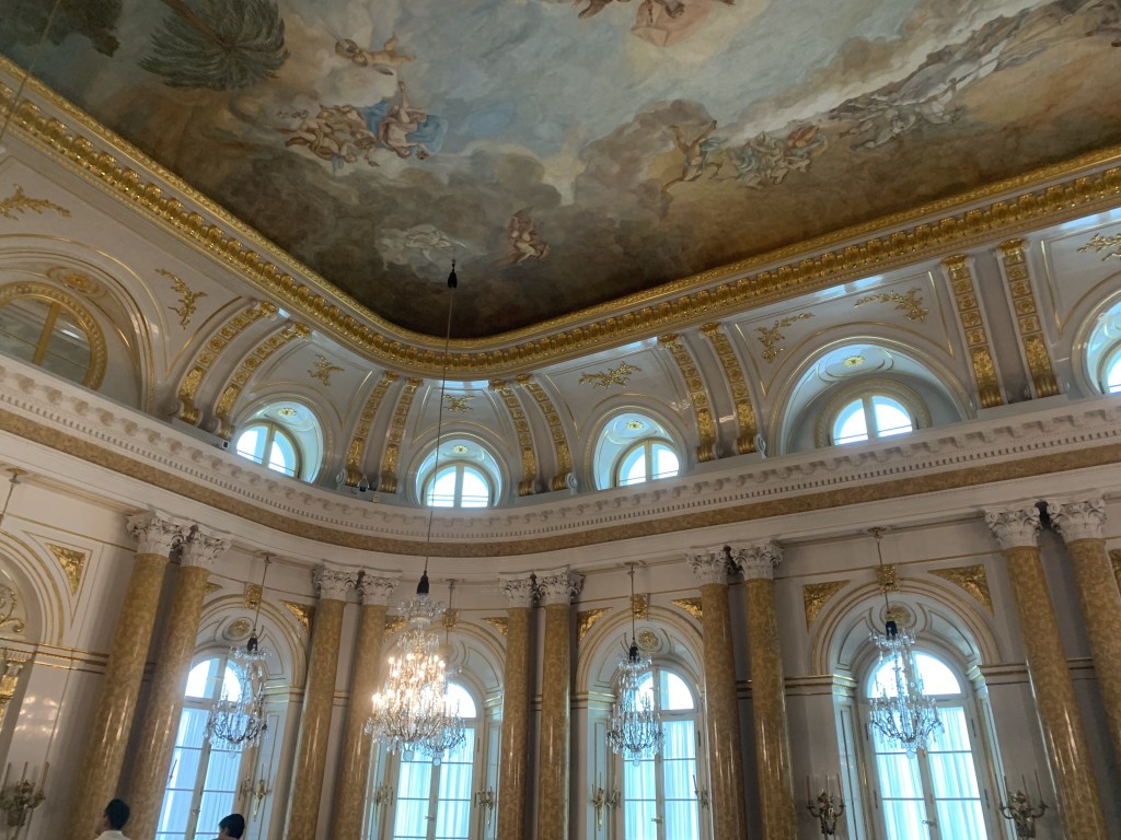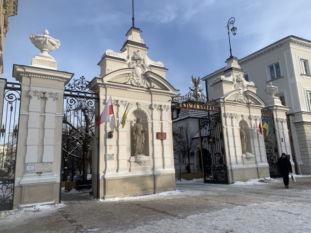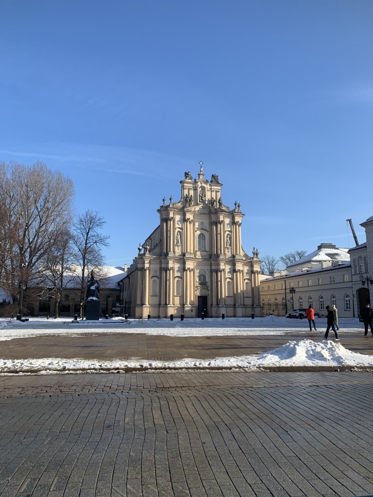 Slightly further along the street is the Czetwertynski-Uruski Palace. This palace was originally built in the 1830s and was the place where King Stanislaw Augustus learnt that he was elected king of Polish-Lithuianian Commonwealth. Unfortunately, the original building was demolished in the 1840s, shortly after it was built, under orders from a member of the privy council and marshal of the nobility. A second palace on the spot was burnt down in the Warsaw Uprising before the version we see today was built. Now, the Palace acts as a department of the University of Warsaw. The gates alongside the palace act as the entrance to the university. We had a wonder around this are to appreciate the architecture. It seems like it would be a very cool place to study.