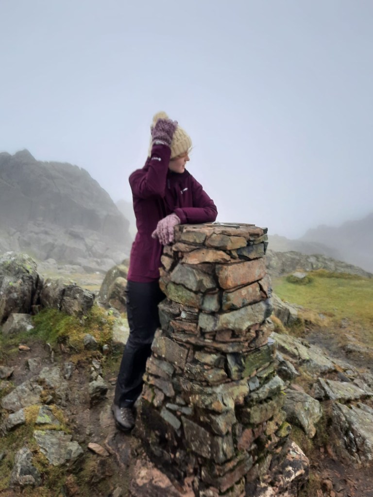 It was actually quite difficult to find the trig point that marked the top of the peak with this one. It was incredibly windy when we were at peak and the whole areas has lots of rocky outcrops but, we eventually found the right one before hunkering down behind some of the rocks to eat lunch away from the wind. On a clear day, you would have great views across some of the Eskdale horseshoes!