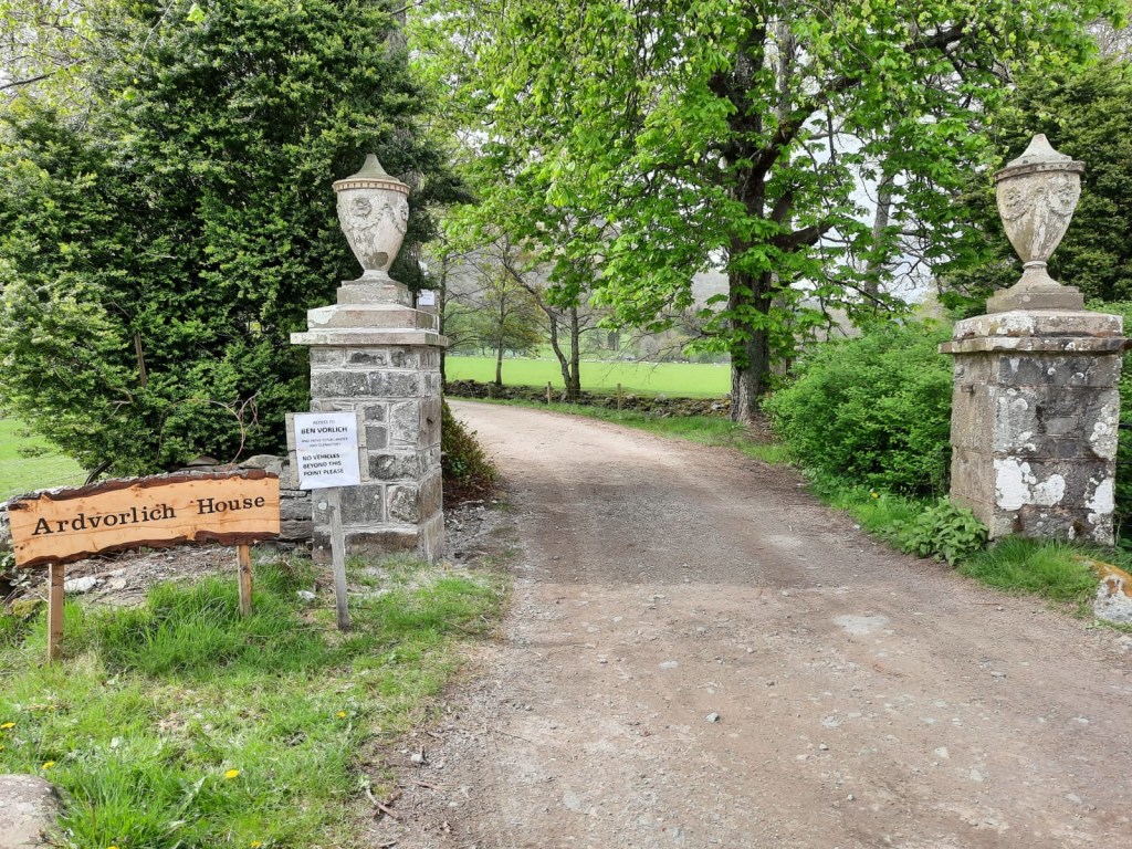 - Head through the gateway to the house and gardens. There is a signpost next to the entrance that reads: ‘Access to Ben Vorlich’