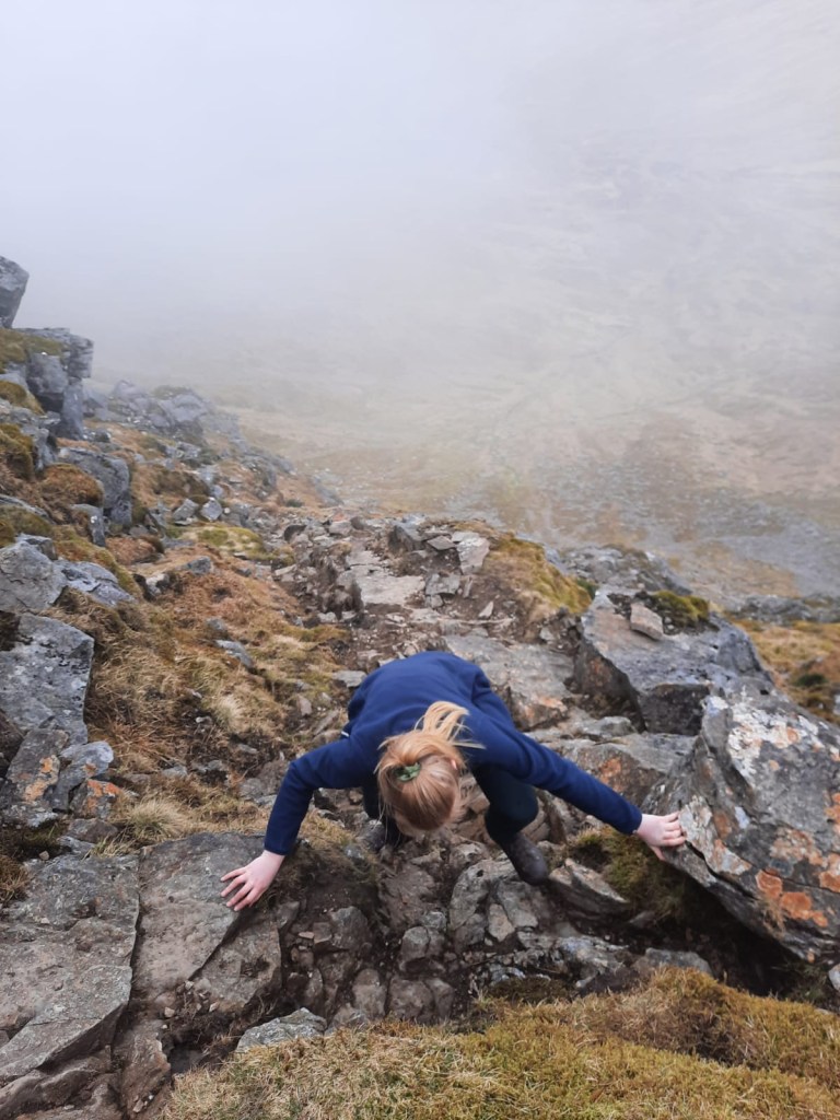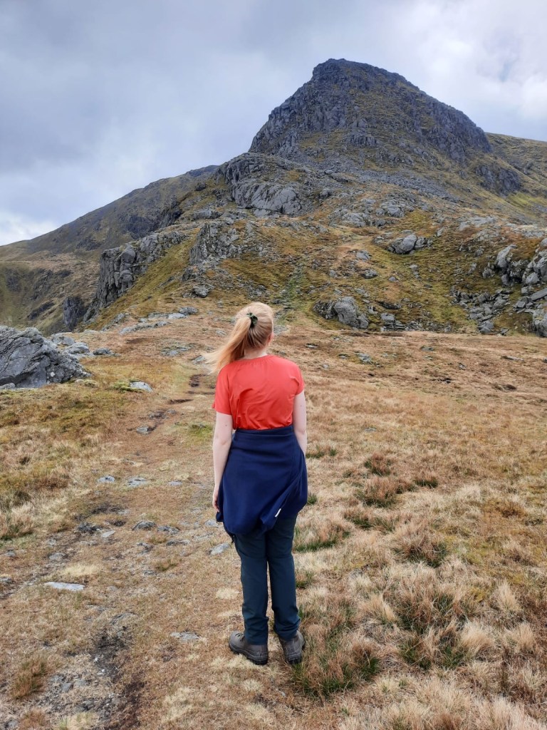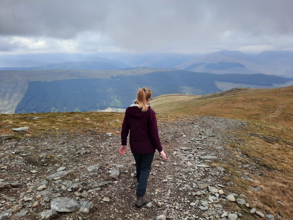 Then, it is time to retrace your steps before heading back slightly left to the path that will take you back to your car. Don’t worry, you don’t have to climb back down the rocks! The main thing to note for the return route is how boggy it is. I posted a reel on instagram which features a clip of my incredibly muddy boot as I got it submerged in the bog at one point. It’s not too much of an issue if the weather hasn’t been too bad which was the case for our walk but, in the rain I imagine it would be much worse. There are many paths around the area as people have tried to avoid the worst spots so it is perfectly manageable overall. You’ve just climbed two munro, who cares about the mud!