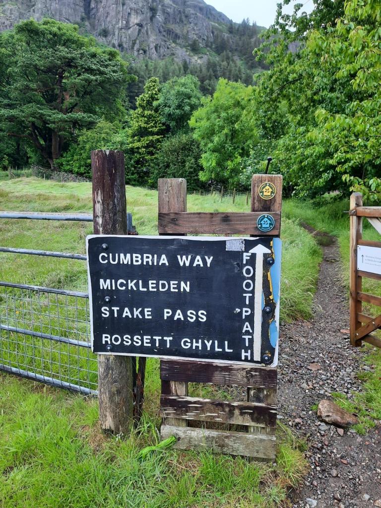 - Cross the footbridge on the left and continue straight, leaving the Cumbria Way which heads to the right.