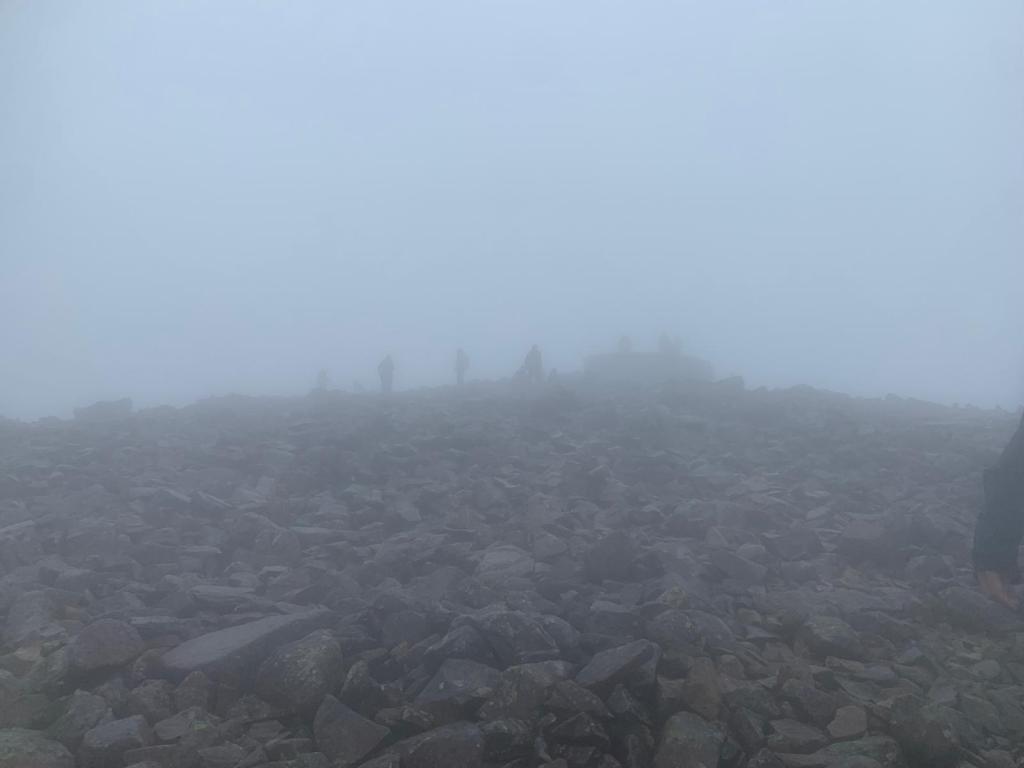 From there, it was a final steep surge to the top. The stone peak of Scafell Pike soon came into view through the cloud (just about) and we reached the top. It was a case of taking a few pictures to commemorate the occasion and then heading straight back down. The weather really was miserable and it didn’t quite reach the triumphant achievement that I was hoping for but alas, we still made it to the highest point in England. On the return route, we decided to head back down to Esk Hause the same way we approached which was a lot easier than we anticipated. The steep descent was much less slippy than we thought and we made quick work of the boulders the second time around.
