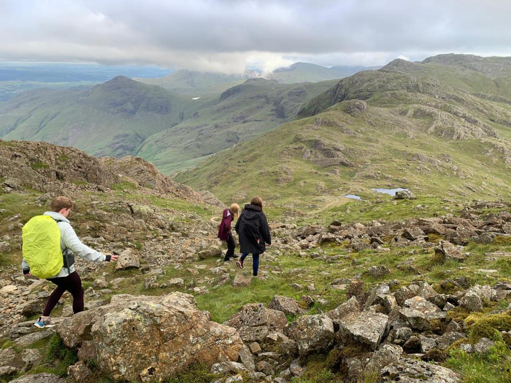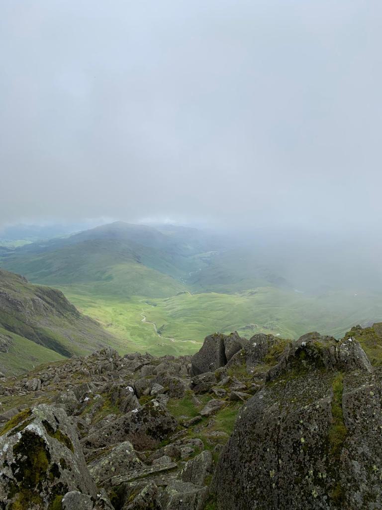 Bow Fell was another minor scramble to the top and down the other side. However, the main highlight here was the cloud cover was finally shifting! We were finally getting a little bit of a view and that certainly helped the morale of the group! We had just bagged the highest, sixth tallest (Bow Fell) and eleventh (Esk Pike) peak in the Lake District and we were finally being rewarded.