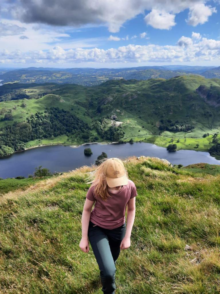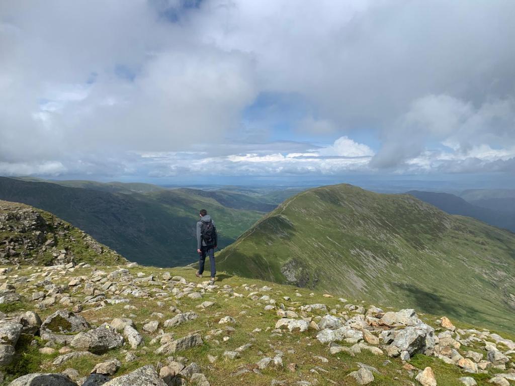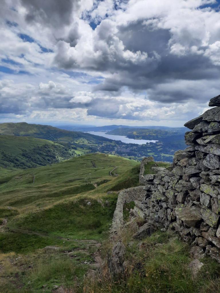 The weather on the way down was changeable to say the least. To say that I was in a sun hat and very thankful for the sun cream that I had applied at the start of the walk, it was soon time to get out the rain coats. As we reached the sixth wainwright, Great Rigg, we were hit with pelting rain from one side. It was crazy! Half of my body was wet and half of each leg. I’ve never been so half-wet! That wasn’t ideal but the shower only lasted a couple of minutes, though the damage was done. It soon brightened up again and we could enjoy the rest of the walk in the sun.