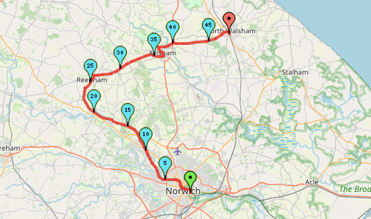 - You have rejoined the Marriot’s Way. Continue for another 11km to reach Aylsham.