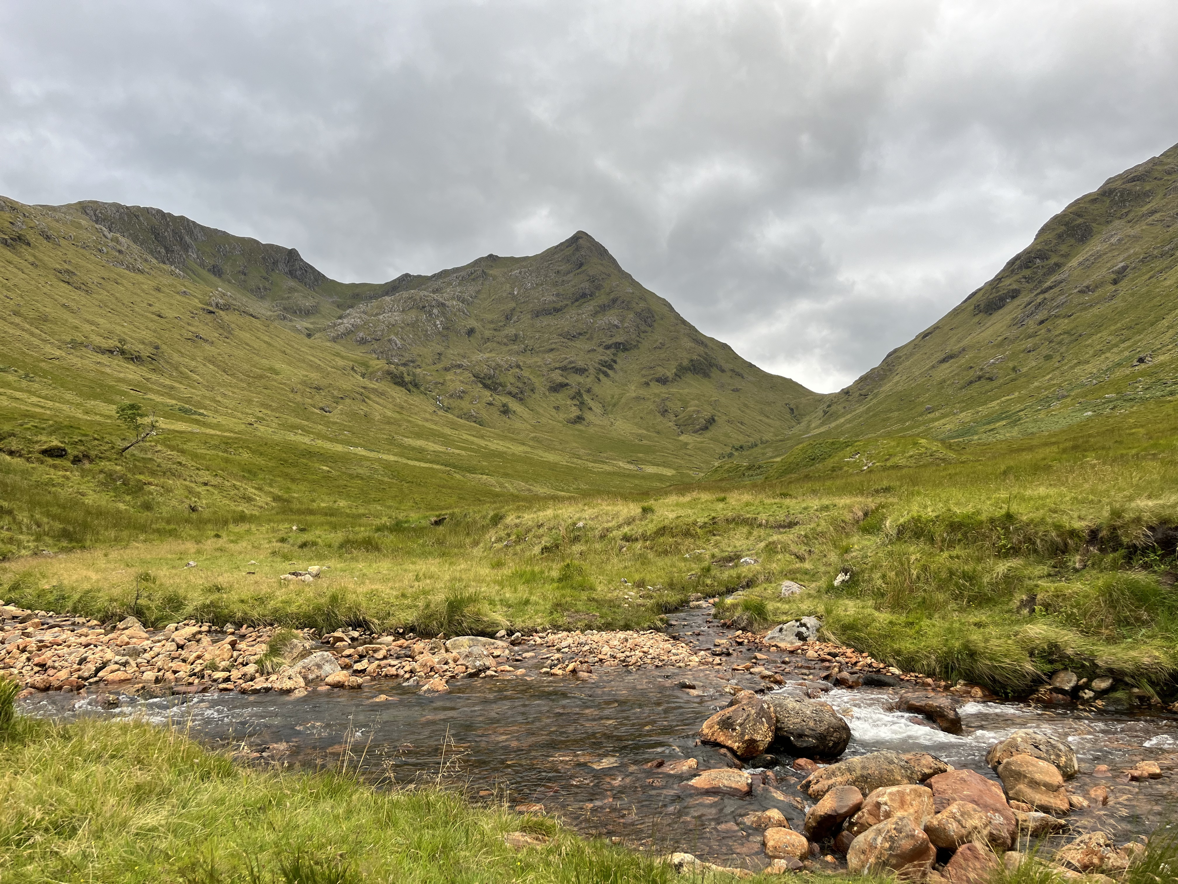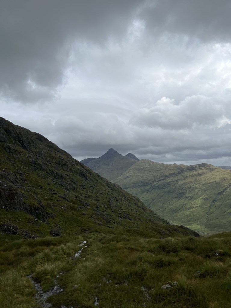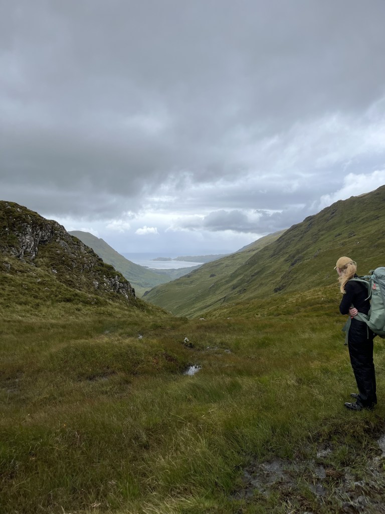 Then, it was a case of walking back down the valley on the other side which was relatively straight-forward. There were a couple of waterfall crossings that were a little more difficult than usual because of the heavy rainfall but we managed to navigate them all with relative ease. We also made the decision at this point to have a snack rather than stop for lunch and just to keep on plowing on to Inverie, our final destination as the weather didn’t look great and we felt like we were on the last stretch. We were only about half way there at this point in reality.