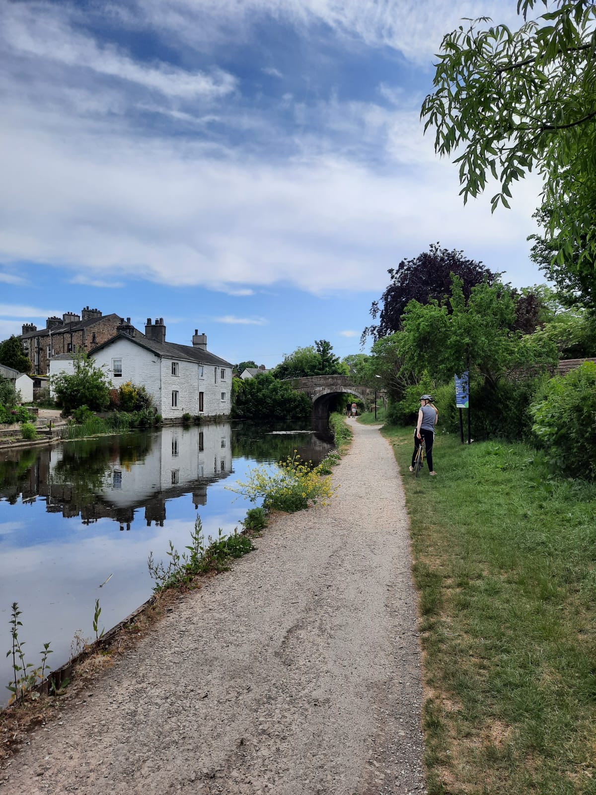 Because the canal was filled in at Kendal, there is some road cycling in the initial section of the route. You follow the Towpath out of Kendal town centre and then, because the path becomes grassy and unsuitable for cycling (if you have a road bike that is), you rejoin the road for approximately 5km on relatively traffic free lanes. On the outskirts of the village of Stainton, we rejoined the Canal but in this case, its an actual canal again! We weren’t sure what the path would be like alongside the canal however, looking over the bridge filled us with hope. It was a lovely path that was suitable for road bikes and we were thrilled. We thought we were in for a great cycle. And we were, just not a very quick one…
