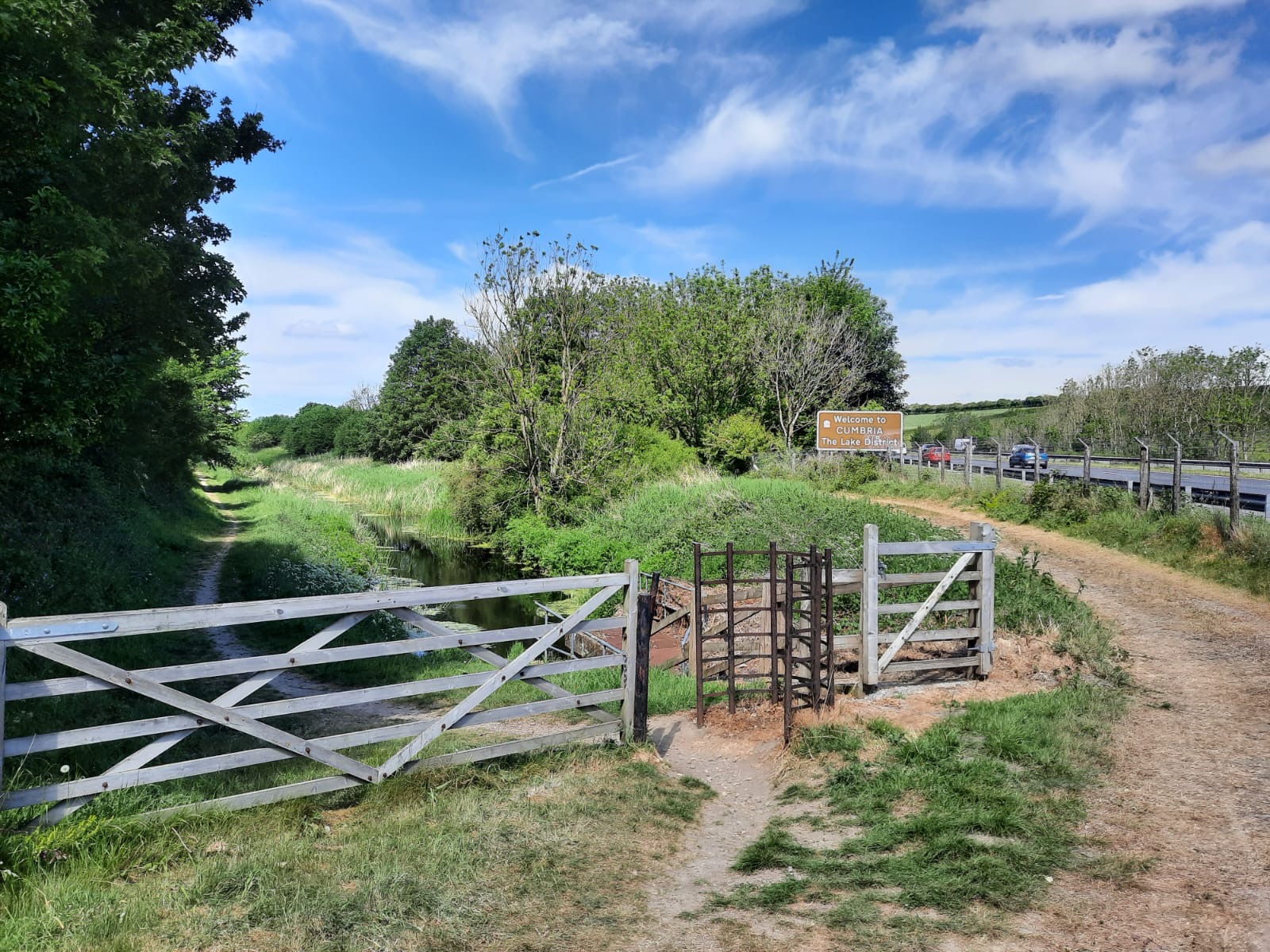 We rejoined the canal and off we went. This is a very simple route that doesn’t require a lot of description as its well way marked and you have the obvious reminder that you’re on the right track – you’re next to the canal. That being said, there are some moments that deviate from the canal, namely because of the M6. When the motorway was built, it cut through the canal as it was no longer in use. This means that in certain places, you have to pass over the motorway instead. The first instance of this is at Millness Boating Centre. We hopped off our bikes to walk along the pavement, under the bridge and then turn right to rejoin the canal. I had been surprised by how empty the canal path was here as I expected families and walkers to be out in the sunshine. However, it soon became clear why.