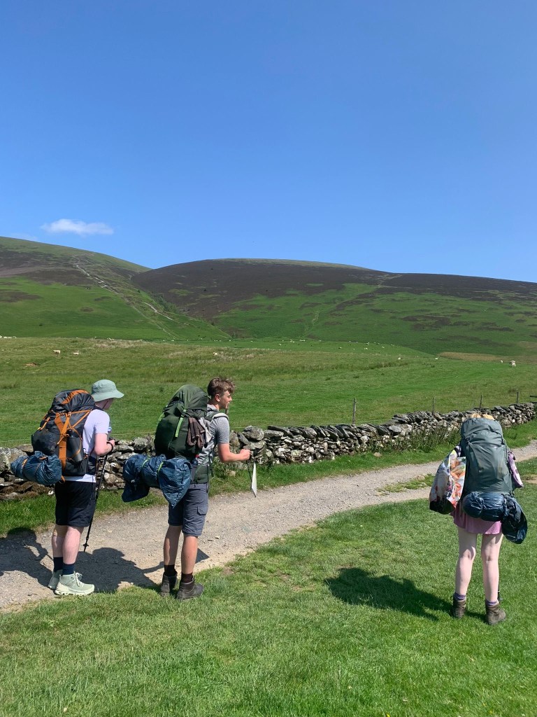 After fantastic views at the top of High Pike, we then descended towards the village of Caldbeck. There is a little bit of road walking to end day five and we soon arrived at Caldbeck campsite which was probably my favourite campsite of the trail! It was fabulous. The facilities were great and it was nice and small which I enjoyed. It was another long day as we didn’t arrive until around 7-8 pm at the campsite and so we opted to eat our dehydrated meals. I was surprised that Megan and Charlie had come right around to the idea of eating these and would go on to voluntarily eat them on day six even though we could have headed to the pub! The meals were supplemented on day five by some very kind girls at the campsite who gave us some of their leftover barbecue and some chocolate for dessert. It was very generous of them. The pub in Caldbeck was also so quaint and cosy – we enjoyed a pint here after our dehydrated dinner!