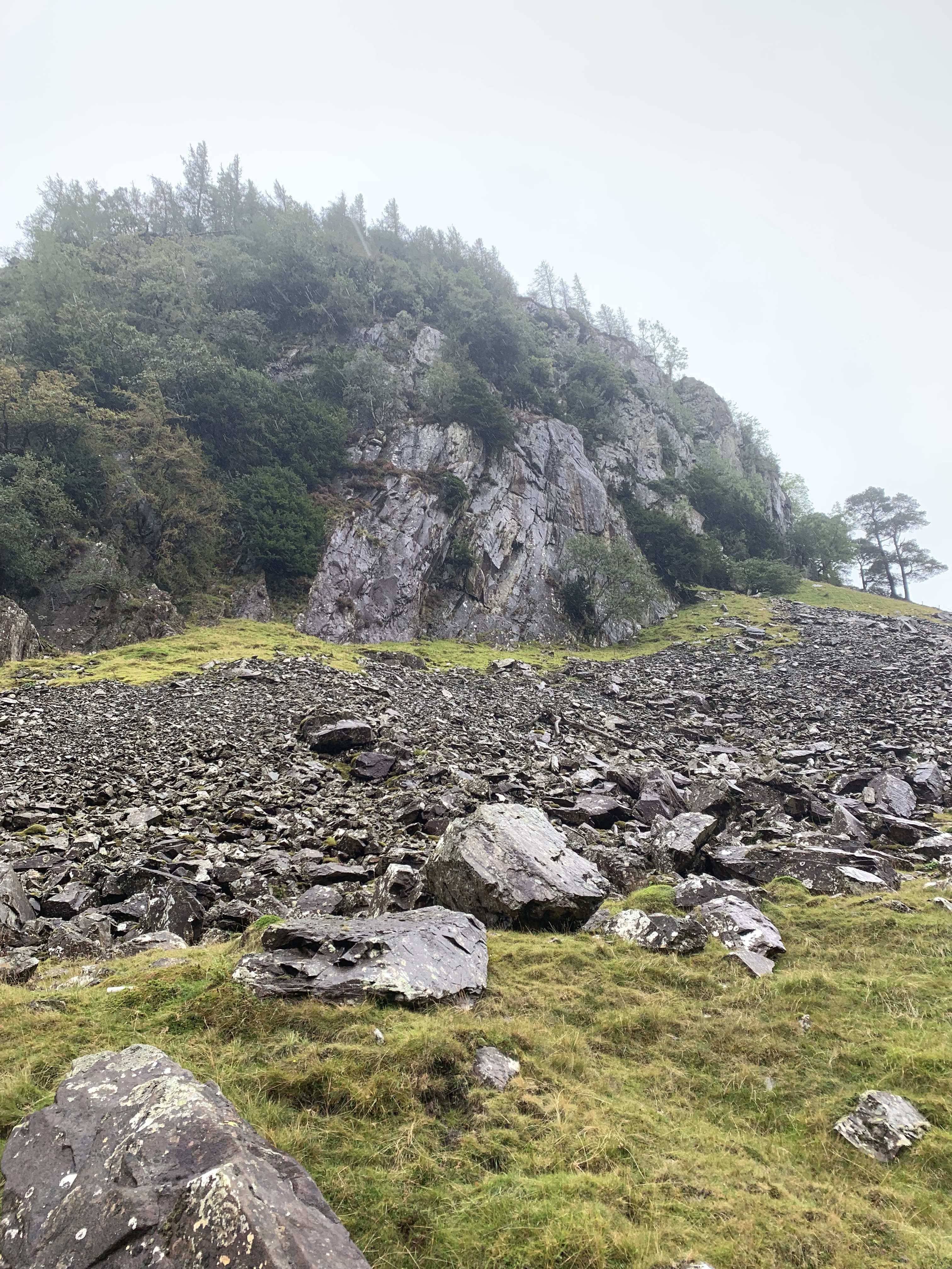 - Descend back down the slate. Once you’ve reached the bottom, keep left to head over the stile and into the field.