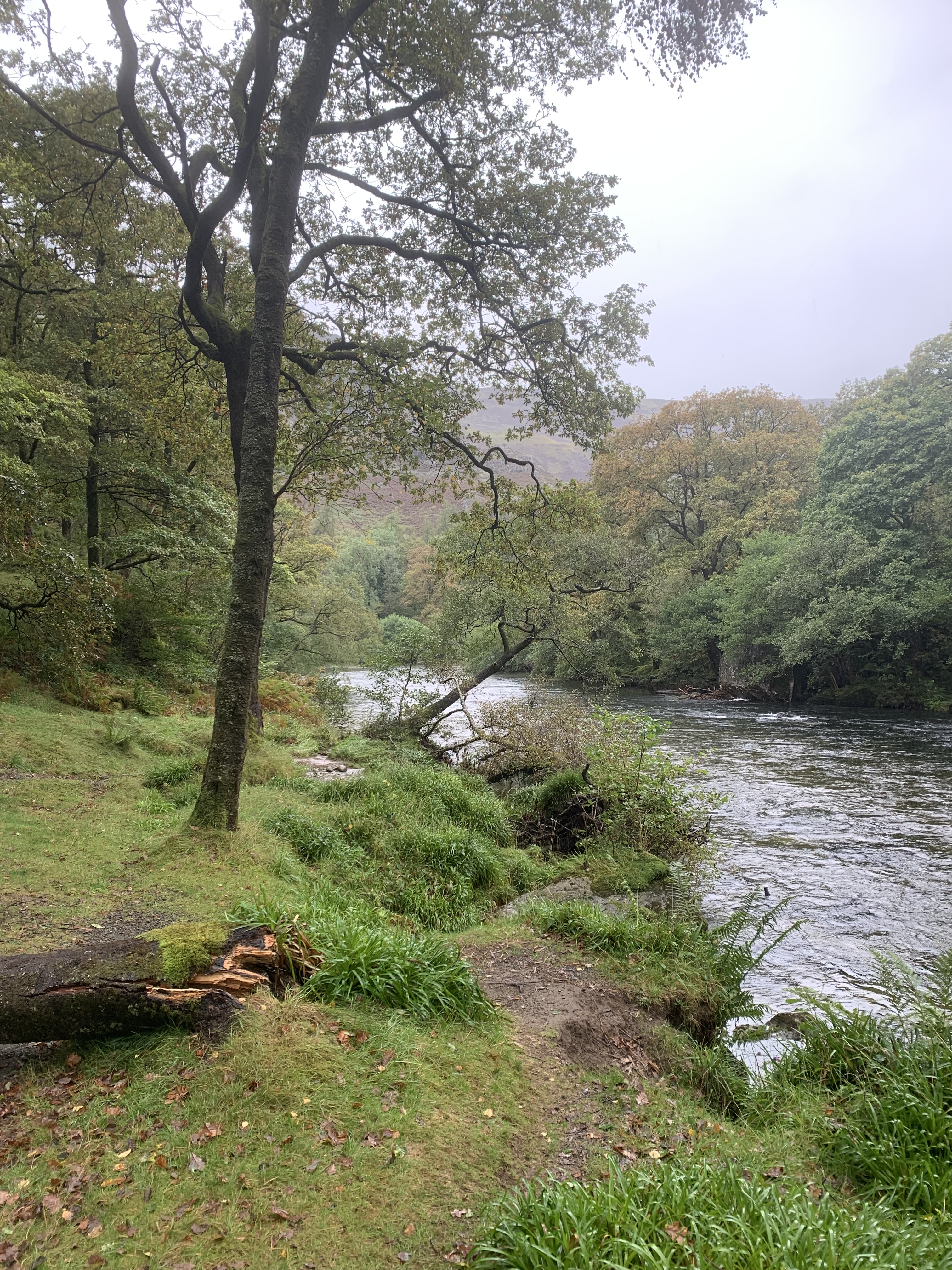From the church, you walk through the village before turning left after the cafe and heading down the lane towards the campsite. Soon, the lane becomes more of a path and menders alongside the river. It was here that we realised we’d walked the path before as part of our Cumbria Way journey. I believe it was on day four when we headed from Borrowdale to Keswick via Catbells. It looked very different on this recent visit though as all the rain we had been having meant that the river was much wider than it should have been and at this point, we were walking the opposite way down the path.