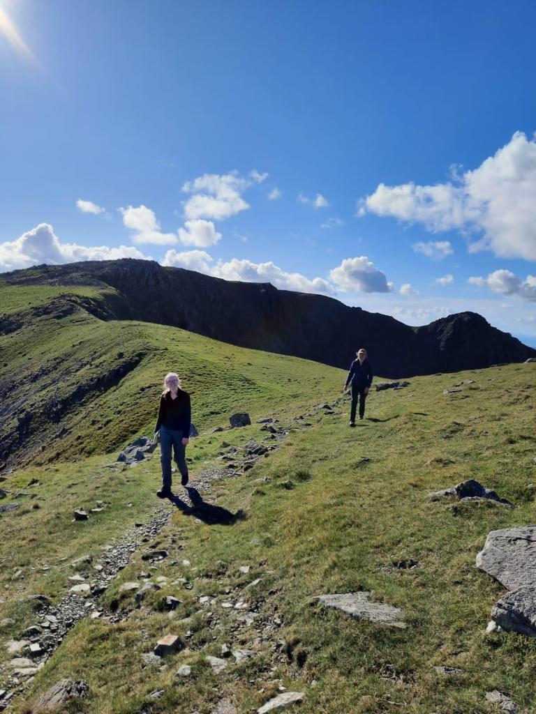 From the car park, you begin with a short walk back along the roadside before beginning the climb up Yewbarrow. This is not an easy start with a very steep path upwards towards the peak. Even from the offset though, you have fabulous views back down to Wast Water which only get better and better the higher you climb. There are lots of sheep in the hills here so, that is something to bear in mind if you have a dog. However, we got to have a very cool experience because of this! The farmers were bringing the sheep down off the hill so we were able to watch the sheep dogs at work. It’s incredibly impressive how easily they work on what is very steep and difficult terrain. I really enjoyed watching them work!
