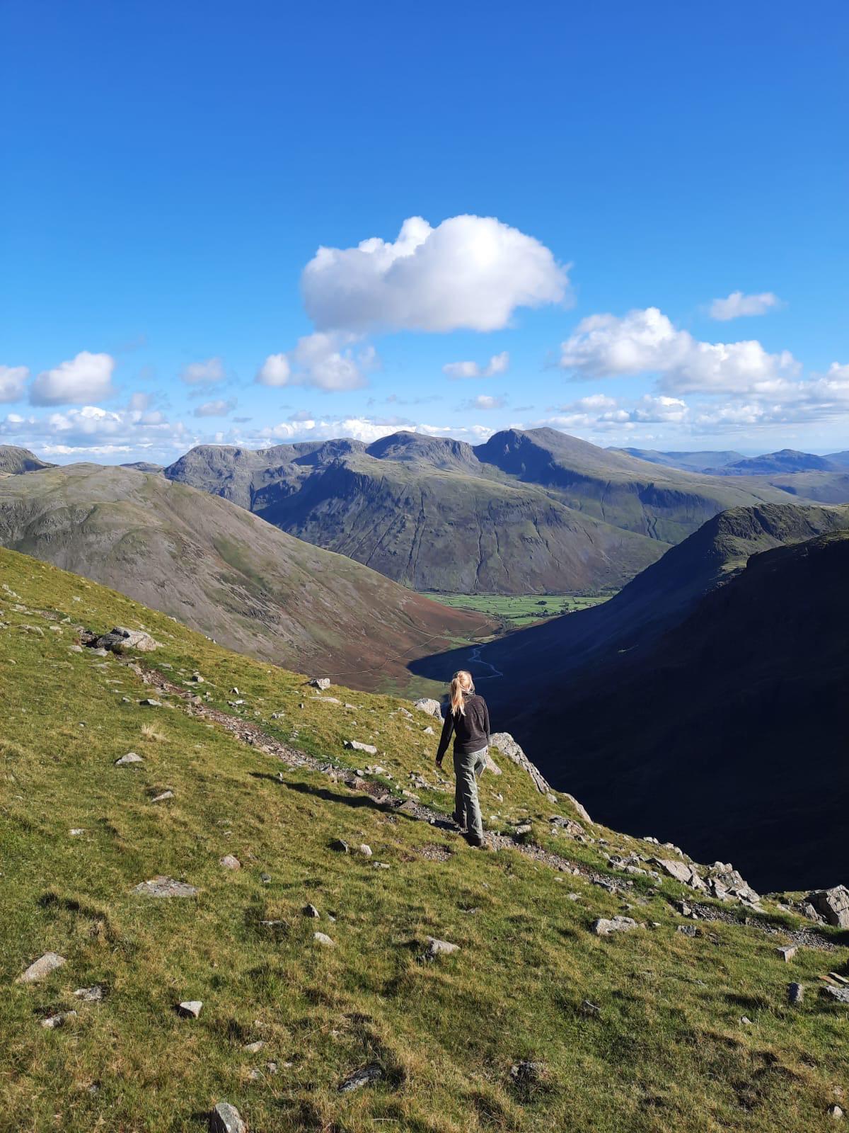 After the initial slog up the steepness, the path then becomes much more of a clamber. I am a bit of work in progress when it comes to scrambling and clambering. I really enjoy it but also find it quite difficult. I always make the classic mistake of thinking I’m stuck which then creates such a mental block. Climbing Yewbarrow was a prime example of this as I got ‘stuck’ and then got quite upset however, literally after a few minutes, I stepped back down and tried again and was able to do it instantly. It wasn’t actually all that hard! It’s such a mental game. Don’t get me wrong, this wasn’t the hardest climb ever and most would find it very easy if you’ve done a bit of clambering before. But, I was really proud of both myself and my sister (who turns out is the same as me when it comes to clambering – just in different spots!) for making it to the top.