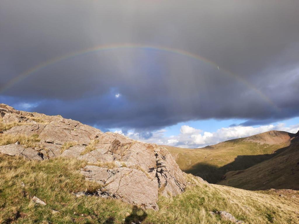 The final Wainwright is a rather unassuming one and is an easy one to bag at the end of some more challenging ones on this trail. Looking Stead at 638m completes the set. On the descent from Looking Stead, it seemed like it was trying to rain but wasn’t really getting anywhere. However, we were graced with an incredible sight, a rainbow across the horizon with what felt like the end right in front of us. Sadly, we didn’t find the pot of gold but felt very lucky to have seen the rainbow so close. I think that’s the first time I’ve seen a rainbow whilst up in the hills and it certainly made the long day worth it.
