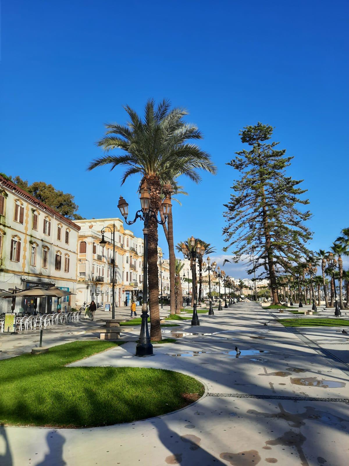 From the viewpoint, we decided we had to head down to the coastline and walked past the port as well as the Dar Al-Baroud and Mosque Lalla Aabla. The tower is a 15th century fortification that was once a key defensive structure. Nowadays, it’s a museum dedicated to fortified buildings and the military history of Tangier. Entrance fees are 50 dirhams which is around £4 (January 2026) so it is very cheap. We didn’t go in but walked around the structure which is impressive in itself. The Mosque Lalla Aabla is clearly visible nearby the tower. This mosque is much more modern than the one seen in Marrakesh as it was built as recently as 2017. It’s known as the Port Mosque because of its location but the official name is from King Mohammed VI’s grandmother who was called Lalla Abla bint Tahar.